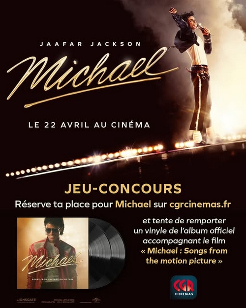 A l’occasion de la sortie du biopic Michael, les cinémas CGR organisent un jeu-concours afin de gagner un vinyle de l’album officiel. Pour participer, il suffit de réserver sa place sur le site ou l’appli CGR.