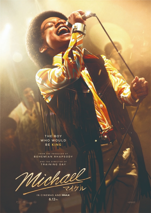 Si le biopic Michael enregistre un démarrage fulgurant à travers le monde, il ne sortira au Japon que le vendredi 12 juin 2026. L’occasion pour le pays du soleil levant de dévoiler maintenant plusieurs affiches du film que vous connaissez déjà en version originale et en français. Comme vous le remarquez, seule une mention en japonais figure sur ces affiches et il s’agit tout simplement de la traduction du prénom « Michael » (マイケル).